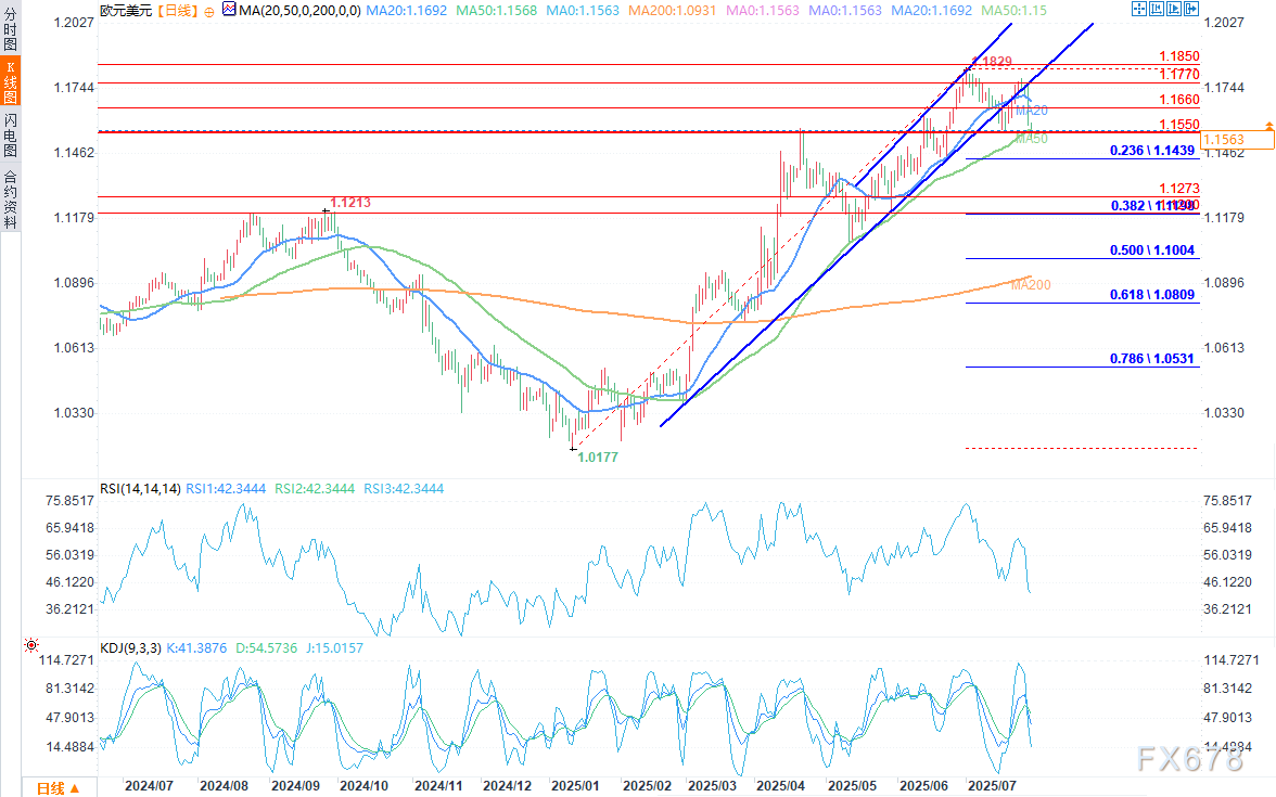 欧元盘中最多下跌0.5%,跌至6月23日以来的最低水平,延续了周一的深跌走势。 法国总理周一称框架贸易协议是欧洲“黑暗的一天”,称欧盟向美国总统特朗普屈服,达成了一项不平衡的协议,美国对欧盟商品征收15%的关税。德国总理默茨表示,由于关税协议,德国经济将遭受“重大”损害。 澳洲国民银行外汇研究主管Ray Attrill表示,“市场很快就得出结论,就近期对欧元区经济增长的影响而言,这一相对的好消息从绝对意义来看仍是坏消息。协议遭到法国的严厉谴责,而包括德国总理默茨等其他人则在强调其对出口商以及经济增长的负面影响。” 麦格理集团全球外汇和利率策略师Thierry Wizman表示,“虽然美元强势...可能反映出人们认为美欧新协议一面倒地有利于美国,但美元走强也可能反映出人们感觉美国正重新与欧盟及其主要盟友打交道。” 特朗普周一表示,他预计美国将对那些未能与华盛顿达成贸易协议的国家征收15%至20%的关税,远高于他4月设定的10%普遍关税。 昨天同一时间,我们都在关注美欧贸易协议如何消除不确定性,让欧盟企业得以继续前行。然而,到了交易日结束,投资者和一些欧洲领导人得出结论:总体来看,普遍关税将会带来负面影响。 随着尘埃落定,制药和半导体行业被纳入15%关税范围(即使在贸易调查结果发布后)可能会被视为一件好事。欧洲需要充分利用这一局面,更多地聚焦于国内需求以应对变化。 周三,欧元区发布第二季度GDP初值,欧元区整体经济增长预计从第一季度的0.6%季环比降至持平,反映贸易不确定性和外部需求疲弱。 荷兰国际银行(ING)分析师认为,“欧元/美元走势持续疲软,当前交投于1.1565美元附近。若今日无法突破1.1600/1.1625阻力位,汇价可能跌破1.1555和1.1500支撑位。” 德国商业银行外汇分析师表示:“明天的美联储会议或显示美国政府政治压力逐步生效,9月起可能降息数次,届时美元可能走软。” 技术分析